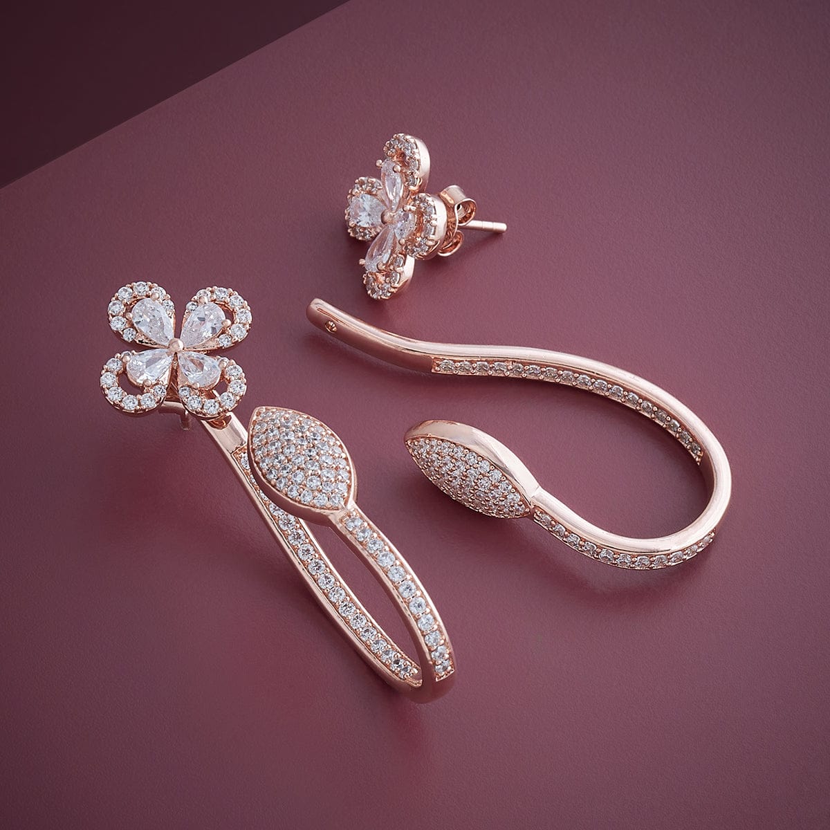 Let our stud earrings bedazzle you with glorious looks this festive season. We have crafted these premium quality 92.5 silver earrings for a sturdy look. The fine-quality zircon and synthetic stones will leave you spellbound. You will have dazzling polish options such as gold, rose-gold and rhodium for your earrings.