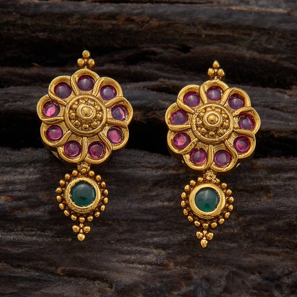 Kushal's Fashion Jewellery Flower Motif Antique Earring