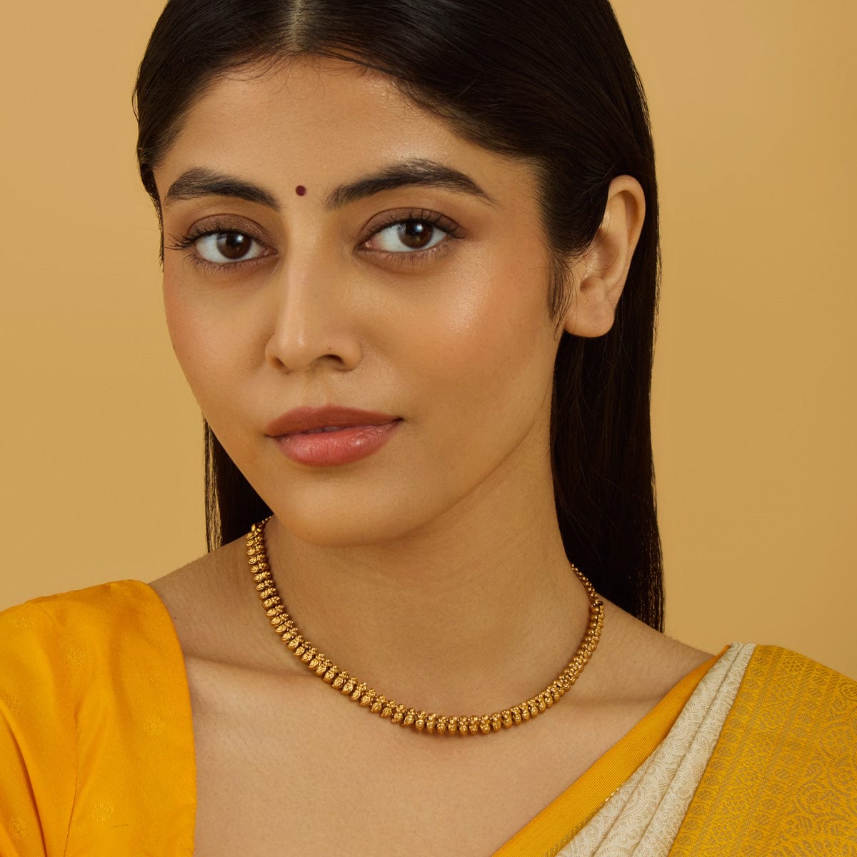 If you’re looking for an accessory that looks good with everything then this antique necklace might just be your saviour. With gold polish, this necklace works with flowy Western dresses to traditional lehengas and sarees. Style with deep colours like maroon and navy for a balanced look.