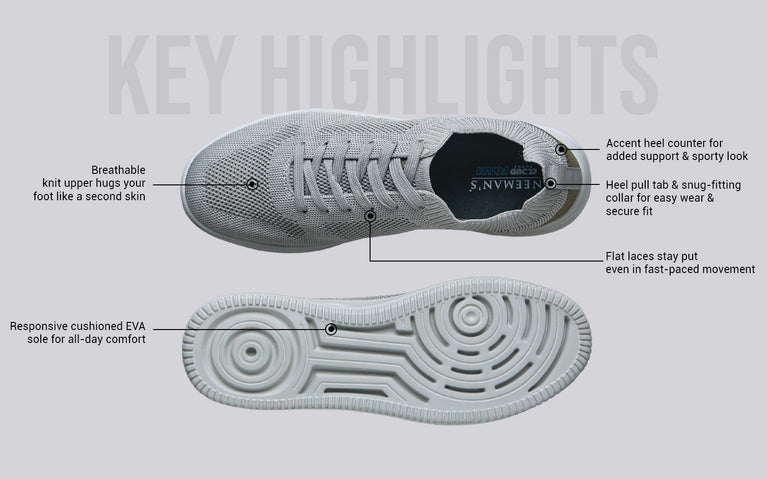 Derby shoes may have been born for boardrooms and Ivy League halls, but at Neeman’s, we reimagined them to vibe with your business casuals. The Casual Derby Sneakers features a breathable & flexible knit upper paired with suede-inspired faux leather pads around the ankle to give it just that right touch of refined polish look. Underneath, the responsive cushioning gives you all the comfort to get through long hours on your feet. Finally, a pair you can work and lounge in.