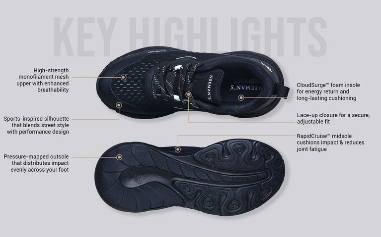 With the dual tech cushioning of our CushyWalk™ midsole and CloudSurge™ foam insole, Begin Walk Ease absorbs pressure and returns energy, adding a bounce to your steps to take on the day’s hustle. Its adaptive performance knit design hugs your feet snugly while keeping them breezy & cool and a pressure-mapped outsole reduces stress on your joints & ankles. This is minimal, with all heart.