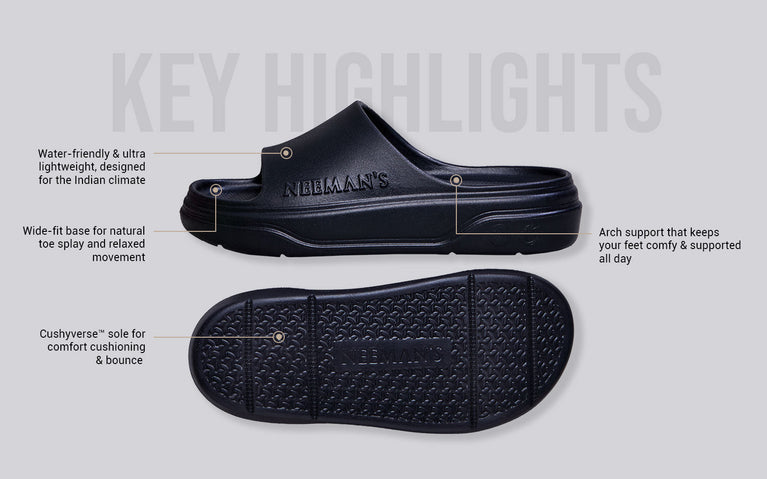 Presenting the Cushers - Crafted for your feet's love for cushioning! With our uniquely engineered CushyVerse™ technology, the Cushers Slides bring bounce, support and comfort extending from mid-foot to heels to your sole.