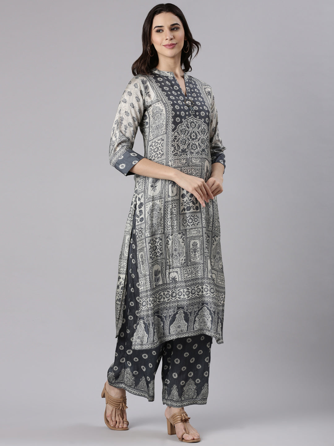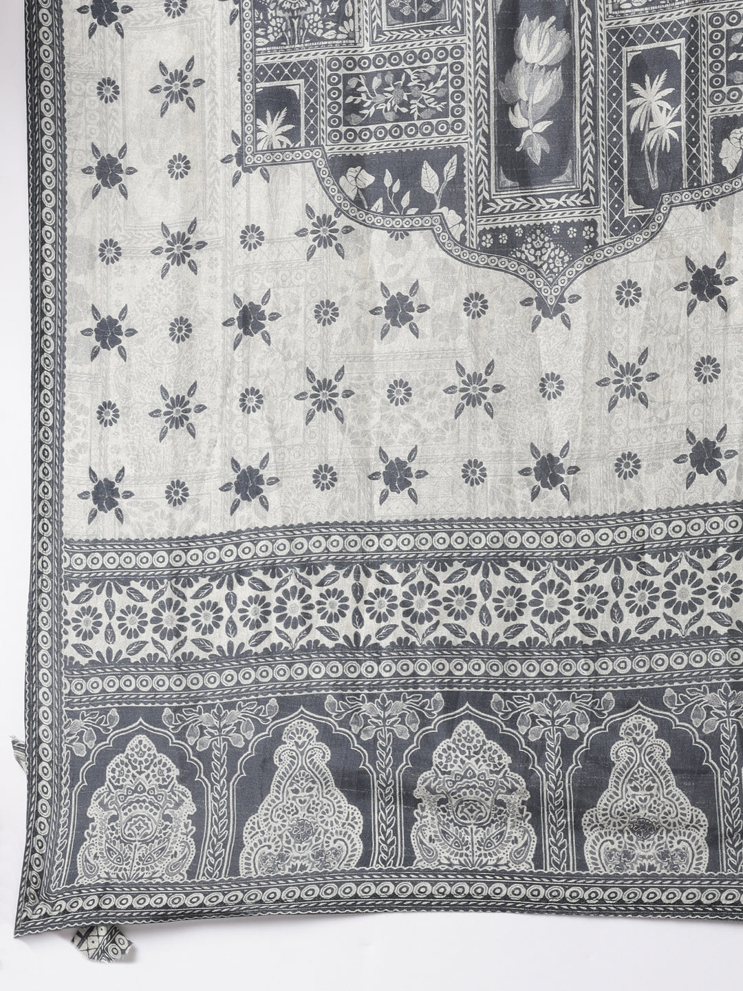 Gray Muslin Printed Three Piece Set