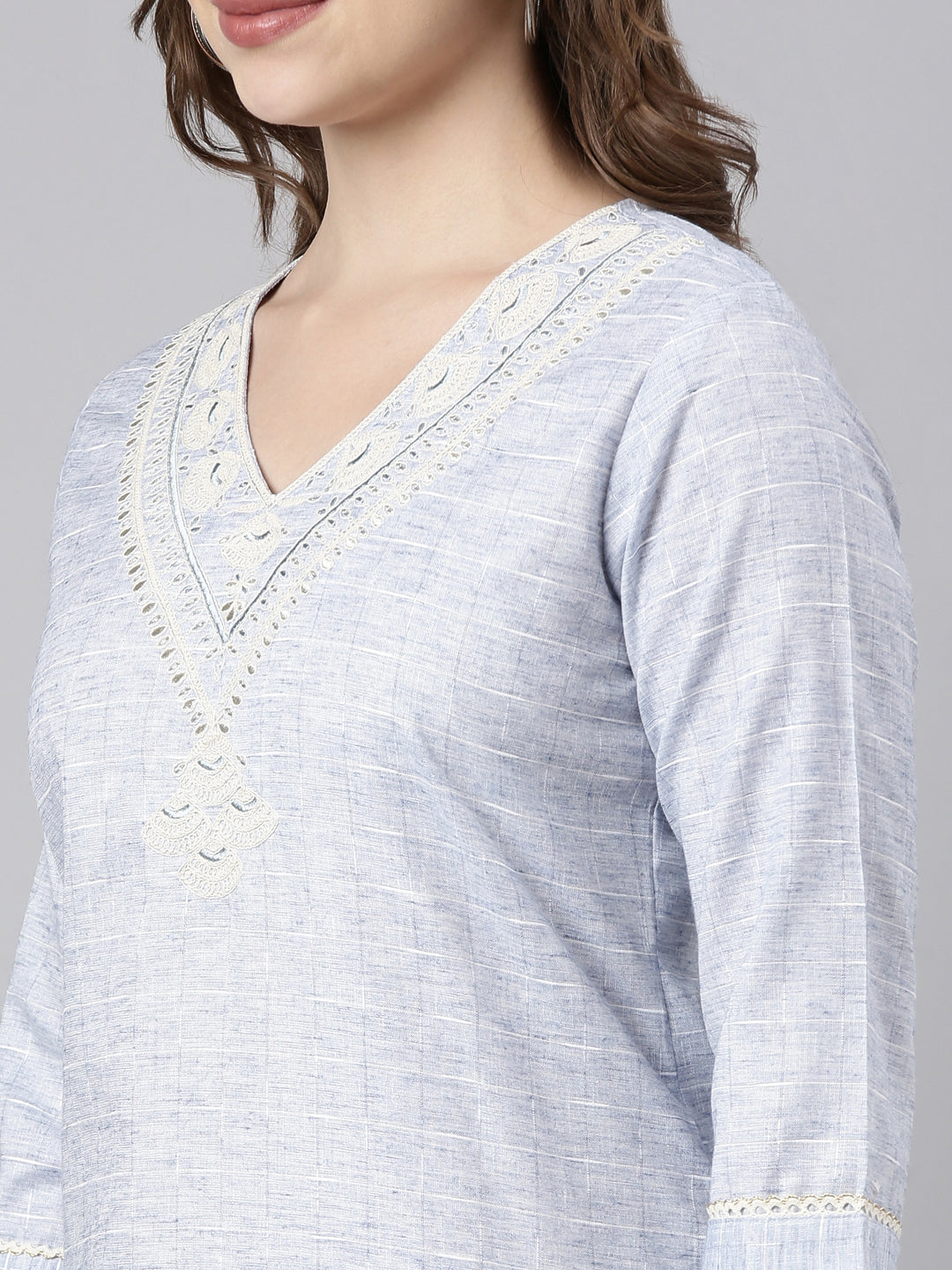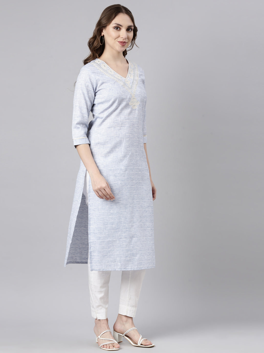 Neerus Blue Regular Straight Checked Kurtas "Get ready to rock your style with these kurtas that are perfect for any occasion! With a classic straight cut and a trendy checked pattern, you'll look effortlessly cool and chic (and never check-less)!"
