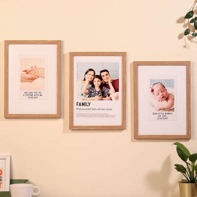 Celebrate your most cherished relationships with this beautiful set of 3 wooden photo frames, each customized with your favorite image and a heartfelt message. Whether it's for your relationship, family, or friendship, these frames are designed to capture and preserve the love and memories that matter most.This set of frames will always have a special place in your home, serving as a timeless reminder of the bonds you hold dear.