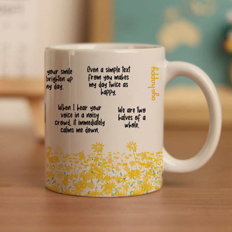 The cutest and the funniest way of bringing a huge smile to your partner’s face. This adorable mug is all you need to remind someone how beautiful relationships are.