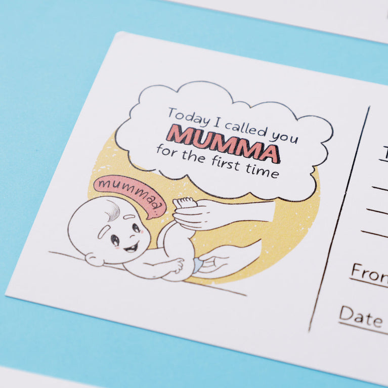 From first words to first steps, this set of 15 “Postcards for My Little One” is a heartwarming way to capture your baby's every special milestone. With cute baby illustrations and adorable messages like “Today I walked my first steps” or “Today I called you mumma for the first time”, you can document all of your baby’s special moments.