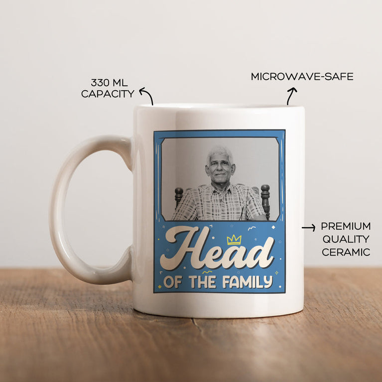 Every family has a strong head that guides, supports and inspires everyone. Here's a mug that honors the leader of the family. And the best part? You can add their photo to the mug to make it even more special.Specifications :Capacity of the Mug - 330mlContent on the Mug - Head of the Family.