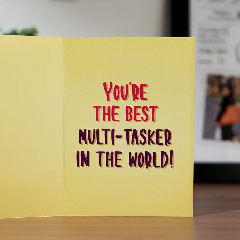 Content on the Card:Front - MOM, You're perfect at everything you doInside - You're the best multi-tasker in the world!