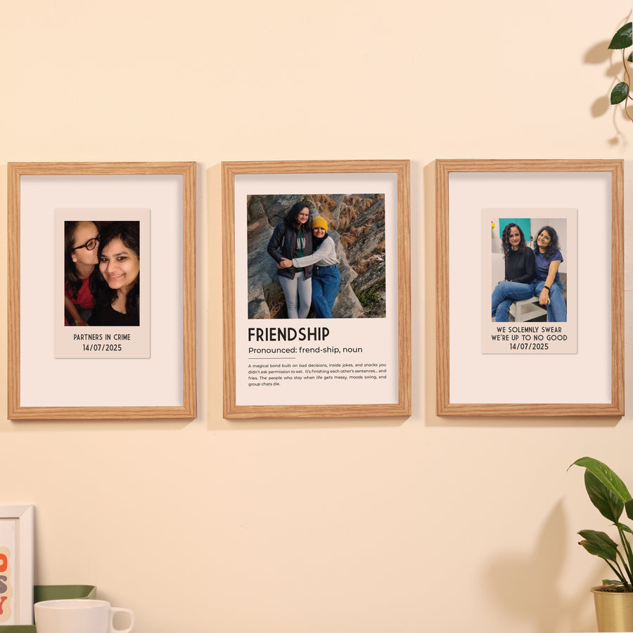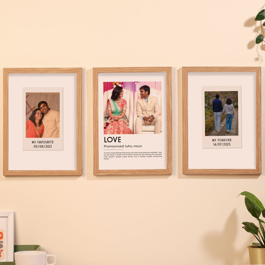 Celebrate your most cherished relationships with this beautiful set of 3 wooden photo frames, each customized with your favorite image and a heartfelt message.