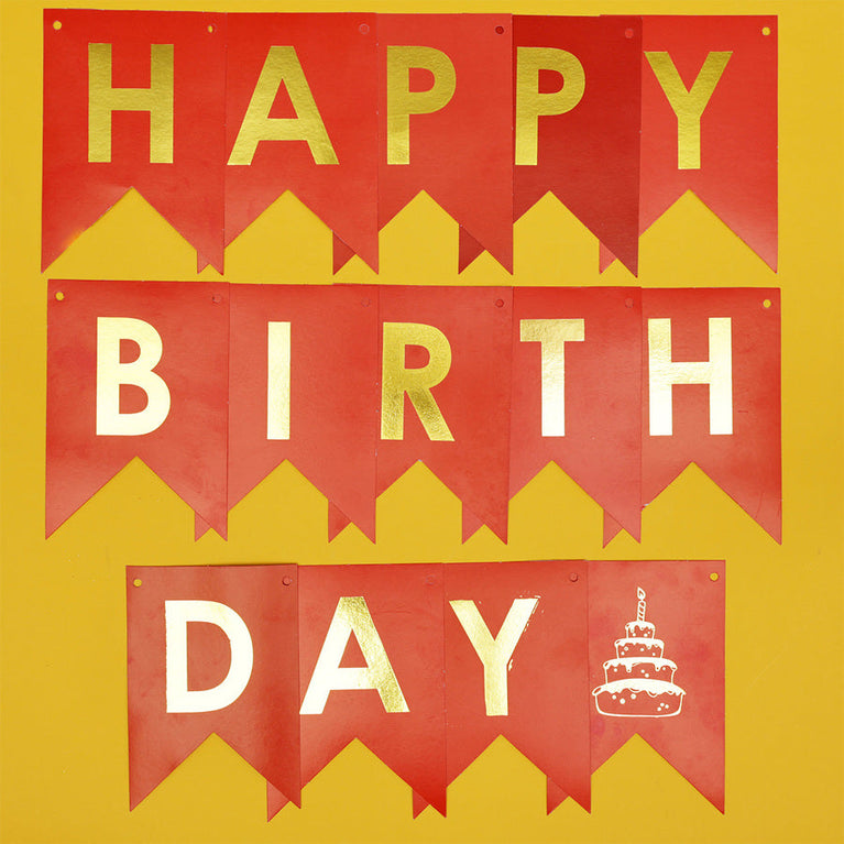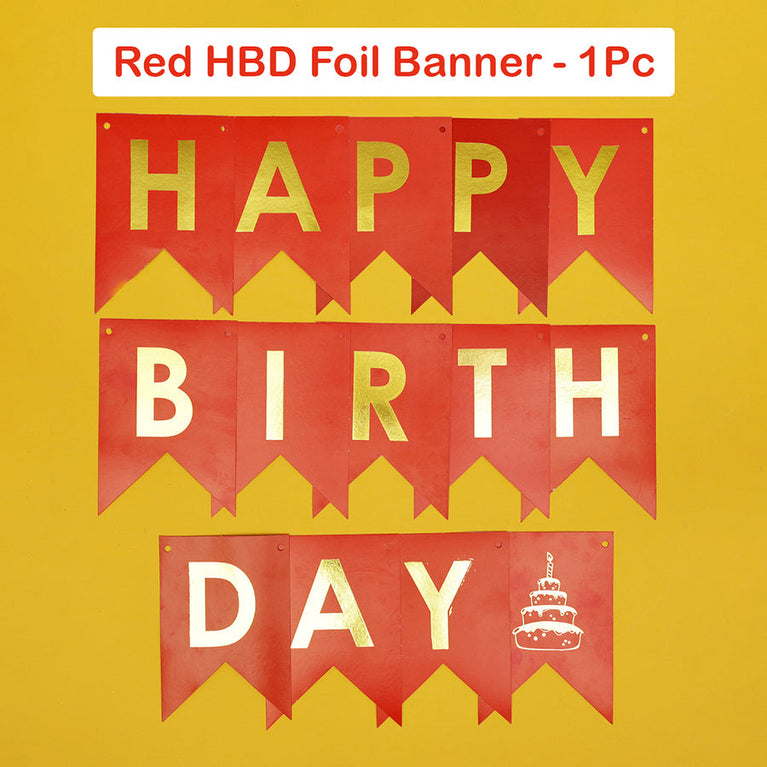 Make birthdays extra special with this vibrant Birthday Banner! Its bold red color with golden lettering adds a festive sparkle to any birthday party.The banner comes pre-assembled, so you can simply hang it and start the celebration. Made from premium-quality foil, it’s durable, shiny, and reusable. Plus, it includes a ribbon for easy hanging, making your décor hassle-free and photo-ready!Specifications:Color - Red with Golden LettersMaterial - Premium Foil