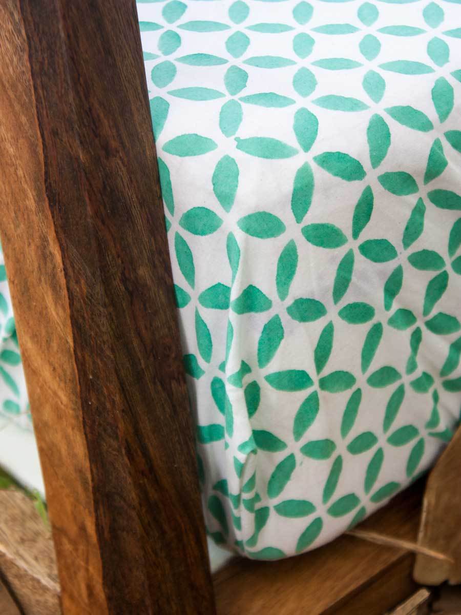 Presenting playful crib/cot hand block print GOTS certified organic cotton fitted sheets. The sheet contains elastic on the sides for easy operation and a snug fit. Made to fit all standard sizes of cots and cribs.