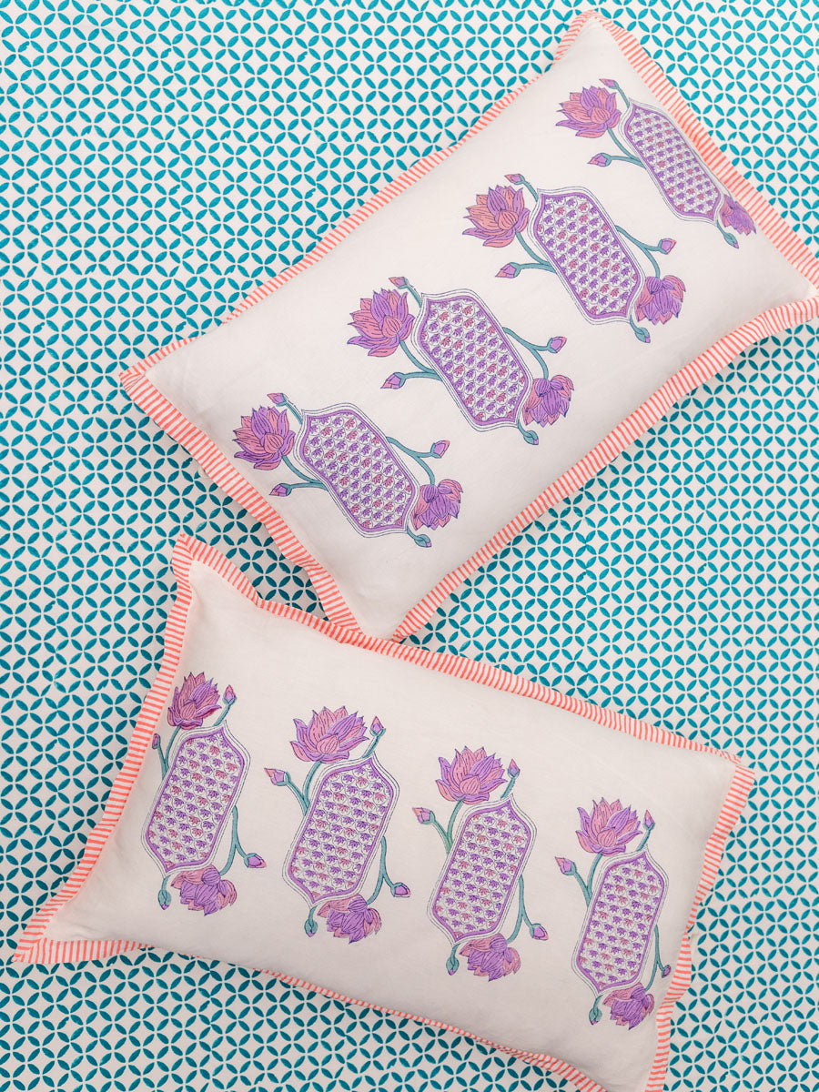 Padma or the Lotus is a central figure in many art forms including Pichhwai. It's a flower with meaning, beauty, and great cultural significance. The origin of the Lotus in Hindu mythology goes as far back as 'Samudra Manthan'. Its first association is with Lakshmi who also emerges from 'Samudra', hence, is referred to as Padmaja or Padmavati. This hand block printed home textiles collection is inspired by the beautiful lotus and other nature inspired elements.