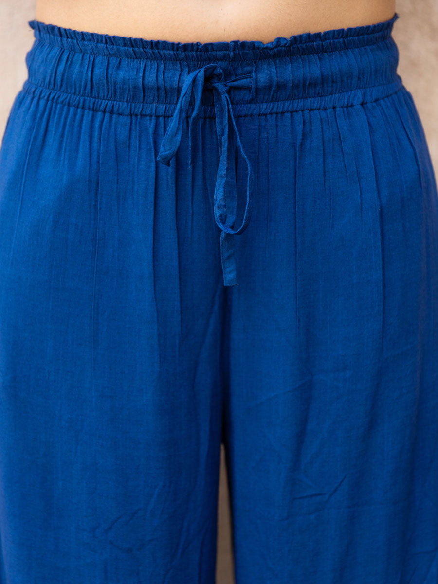 Royal Blue Slub Palazzo Pants