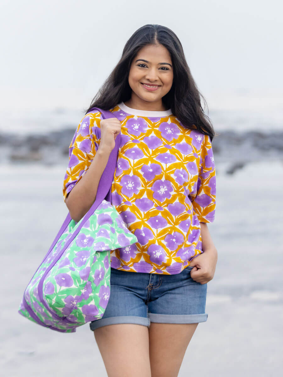 • Hand block printed using low-impact dyes