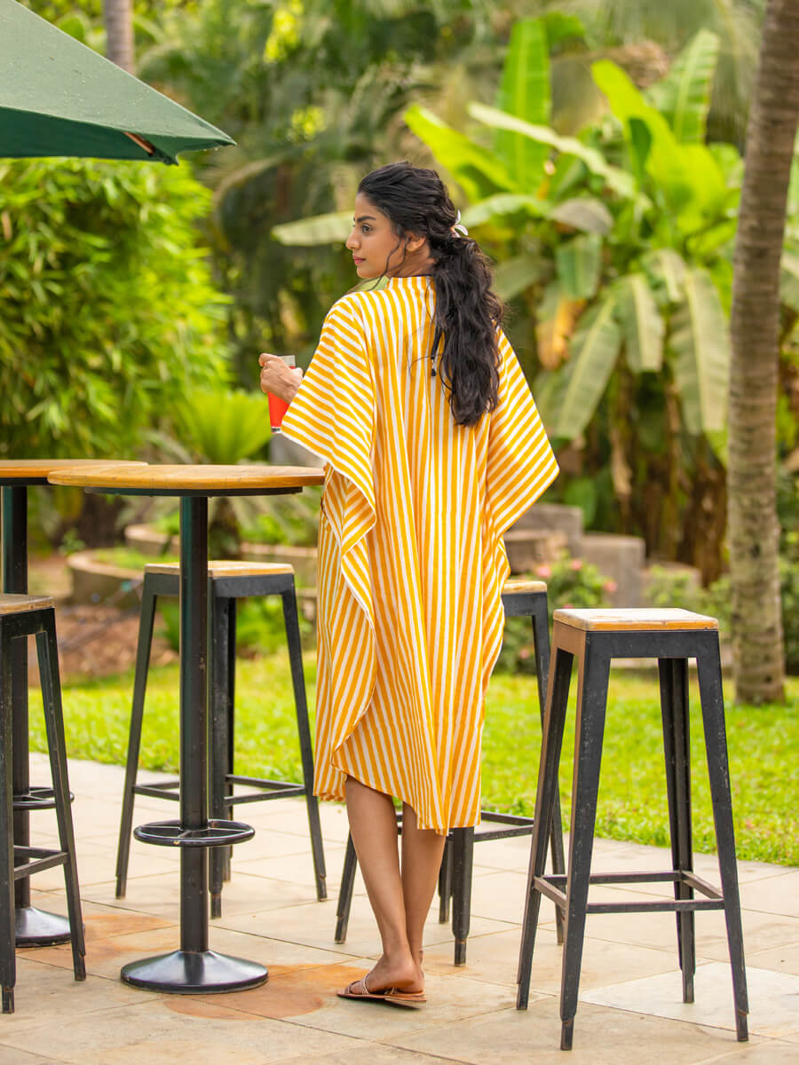 Yellow Stripes Kaftan Cotton Shirt Dress