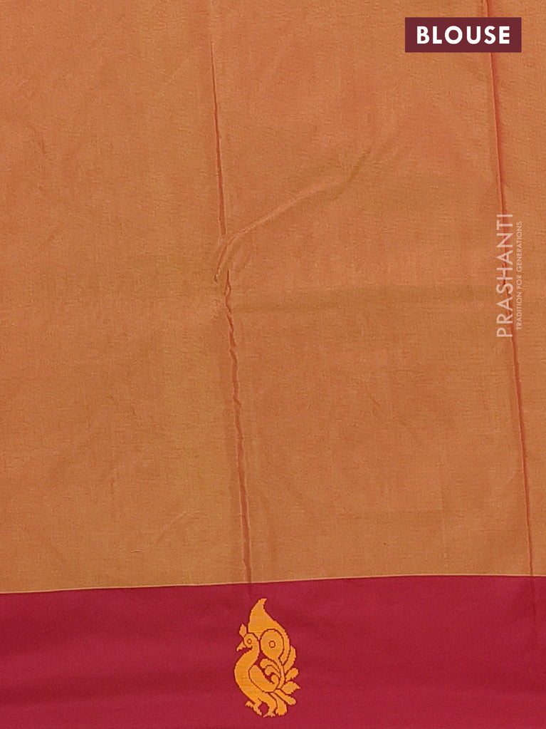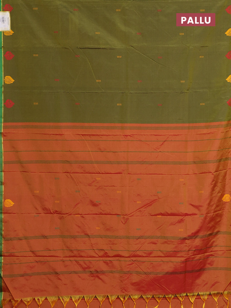 Arani semi silk saree rust shade and green with thread woven buttas and thread woven butta border