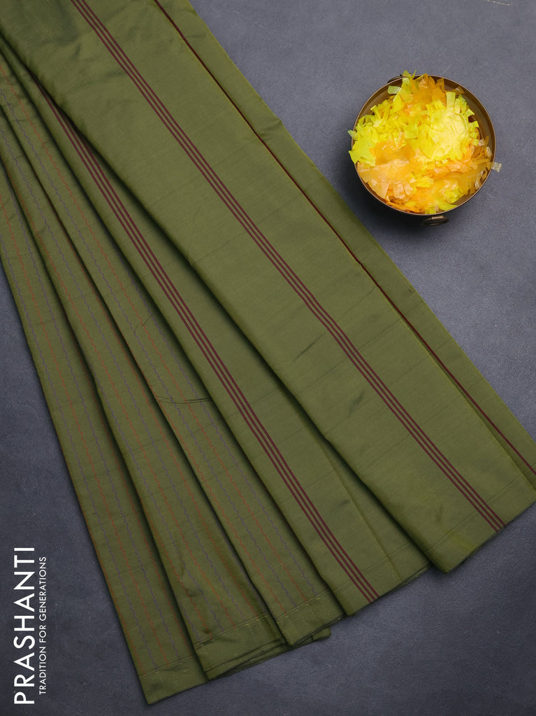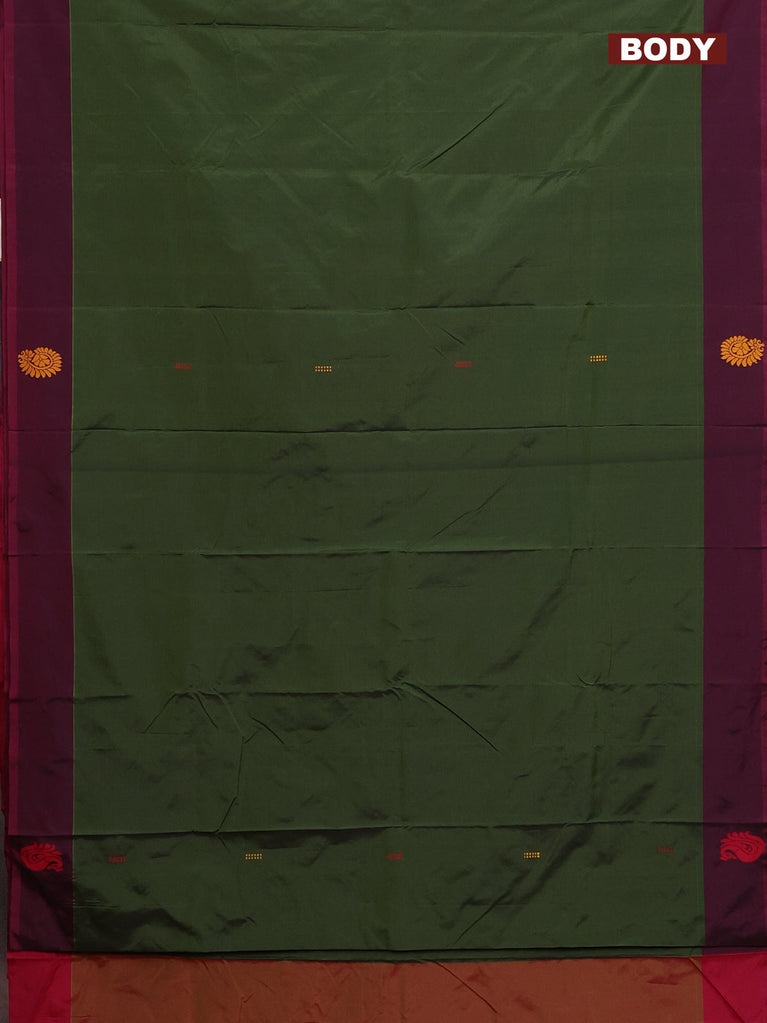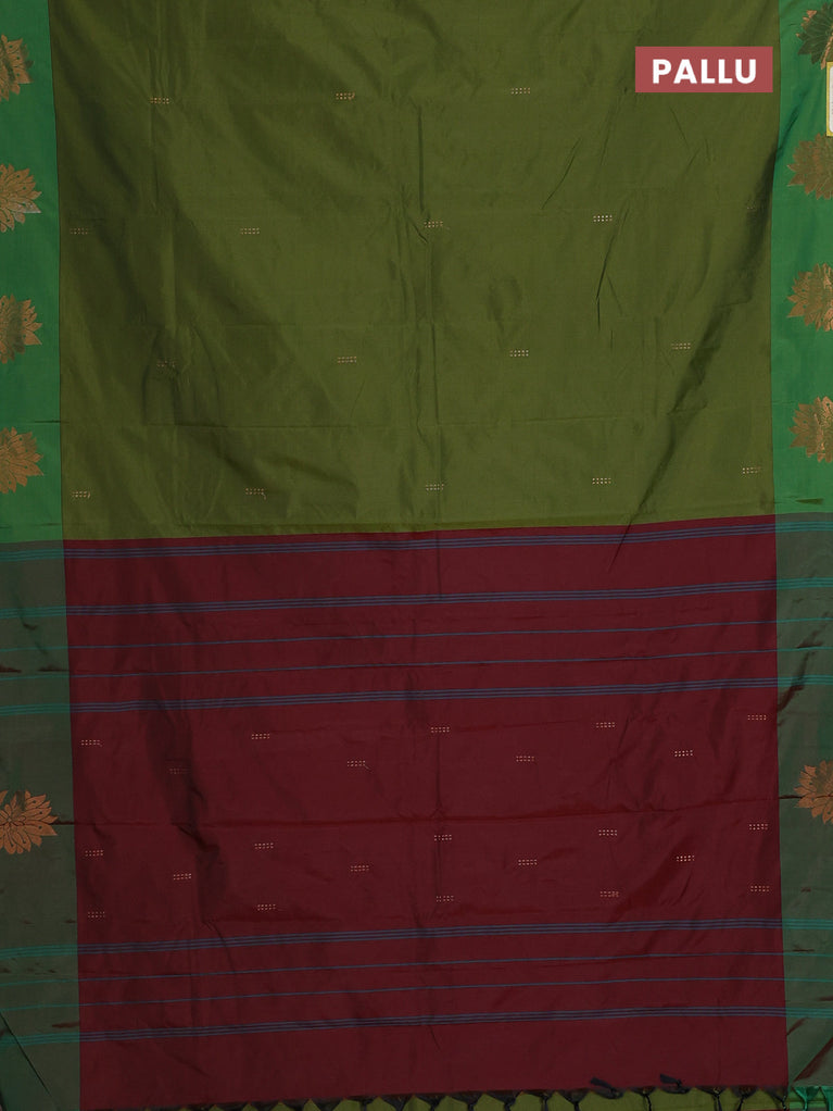Arani semi silk saree sap green and dual shade of maroon with thread woven buttas and thread woven butta border