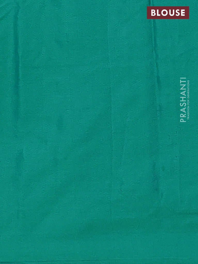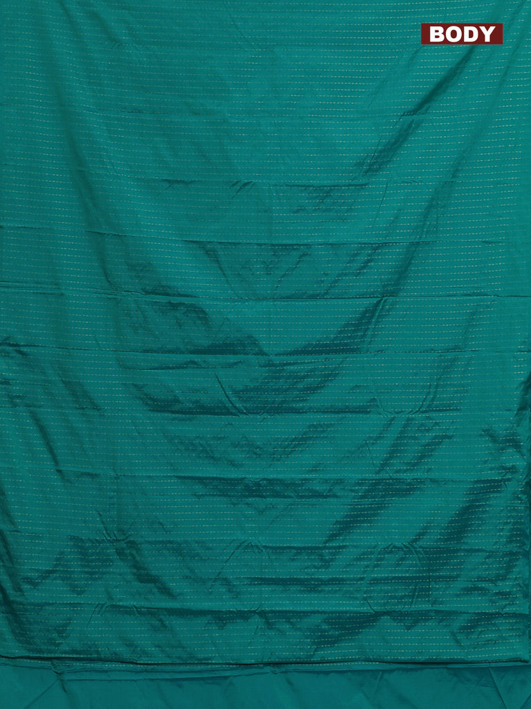 Arani semi silk saree teal blue shade with allover zari weaves in borderless style