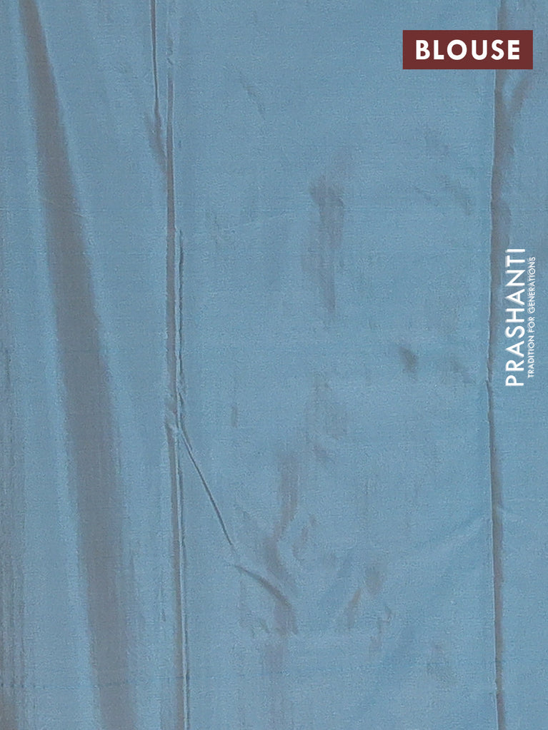 Arani semi silk saree teal blue with allover copper zari weaves in borderless style