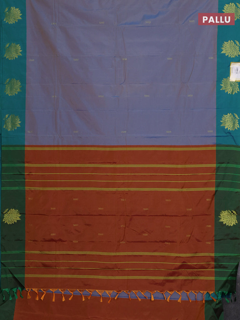 Arani semi silk saree dual shade of bluish green with thread woven buttas and thread woven butta border