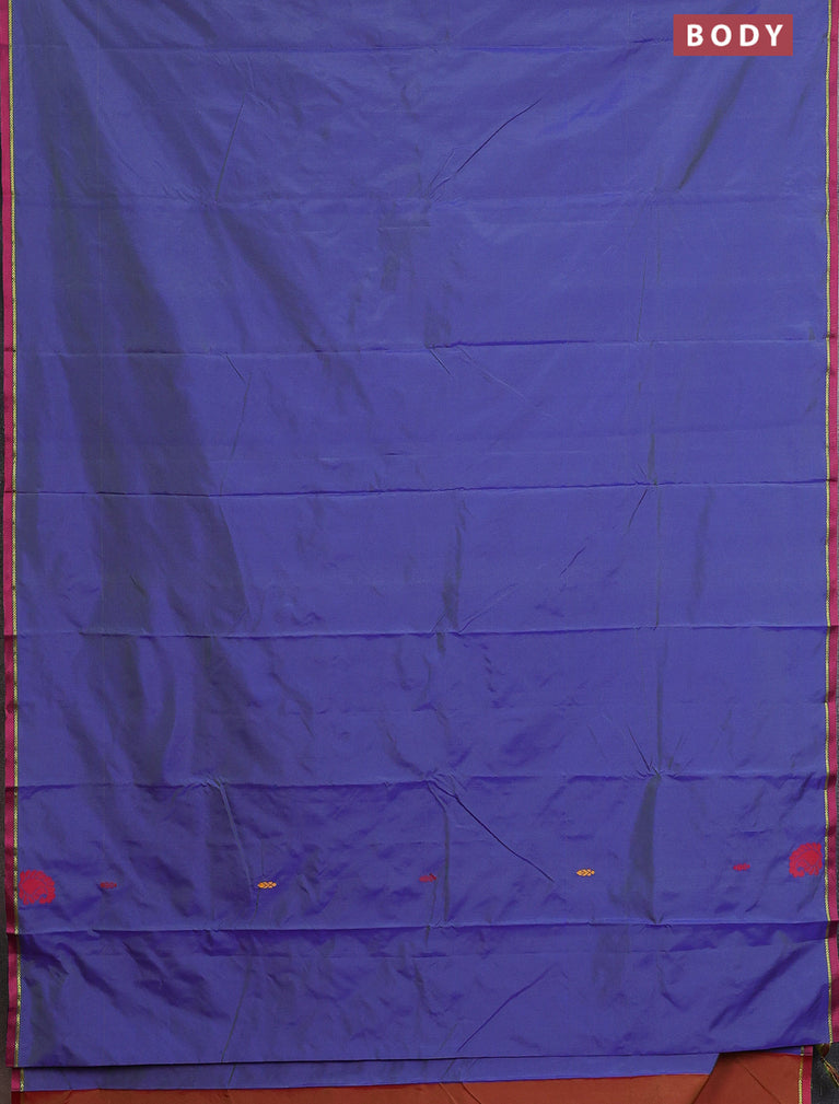 Arani semi silk saree dual shade of bluish maroon and teal blue with thread woven buttas and thread woven butta border