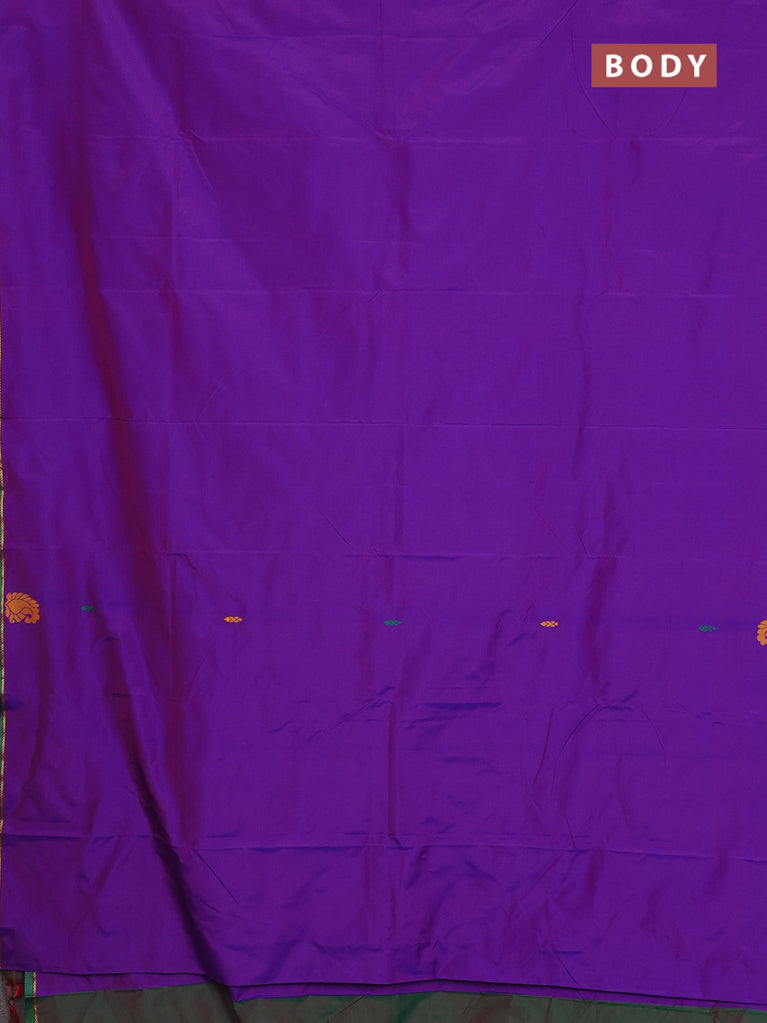 Arani semi silk saree deep violet and dual shade of green with thread woven buttas and piping border