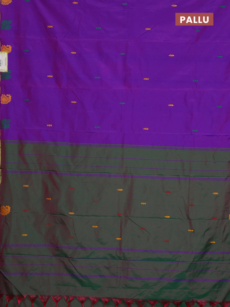 Arani semi silk saree deep purple and dual shade of green with thread woven buttas and thread woven butta border