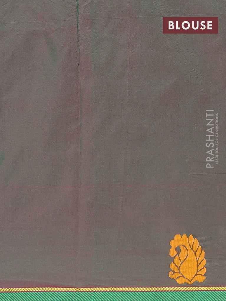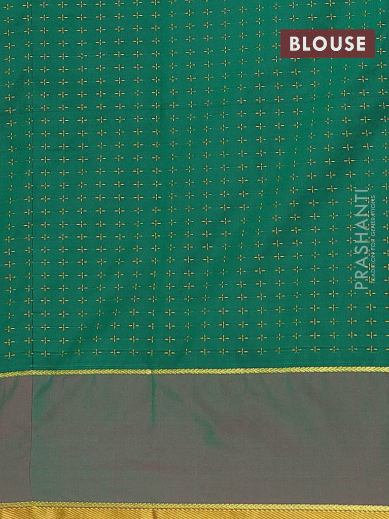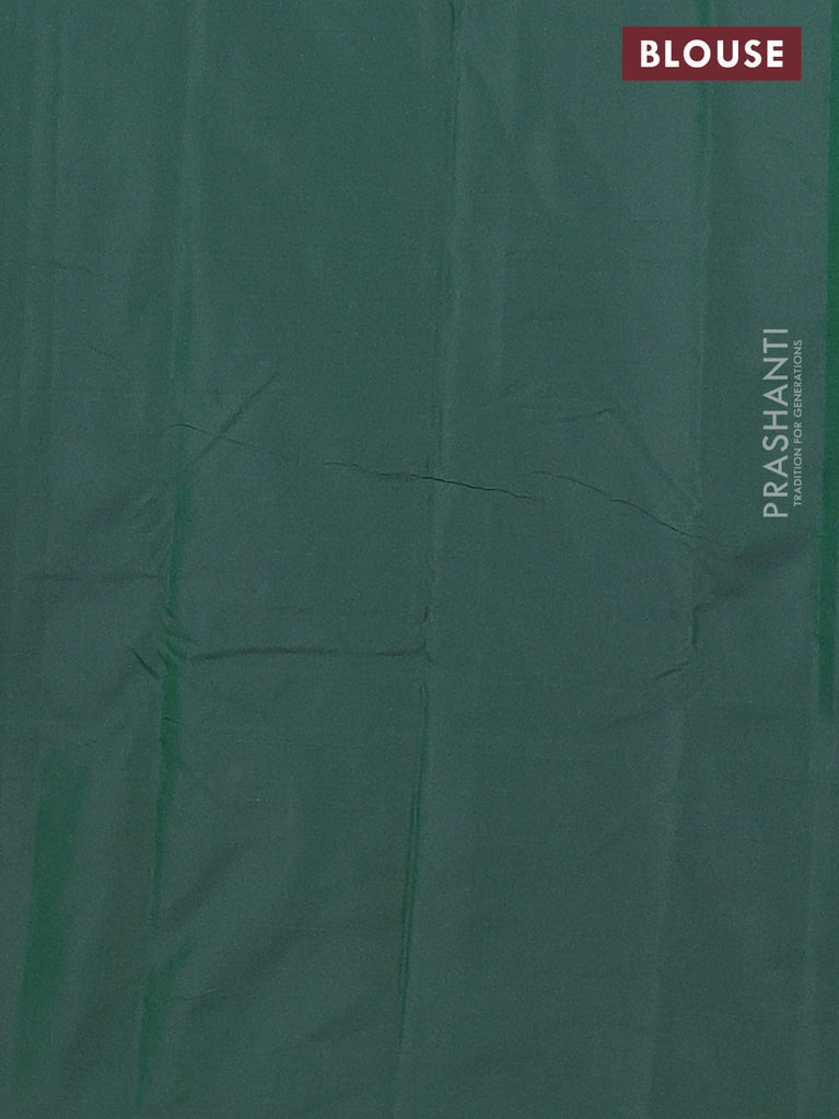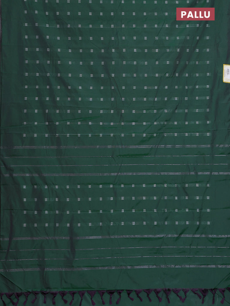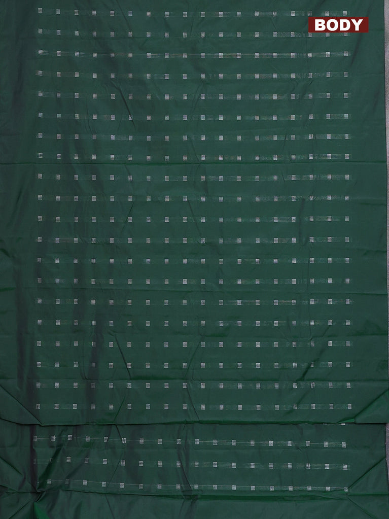 Arani semi silk saree dual shade of dark green with silver zari woven buttas in borderless style
