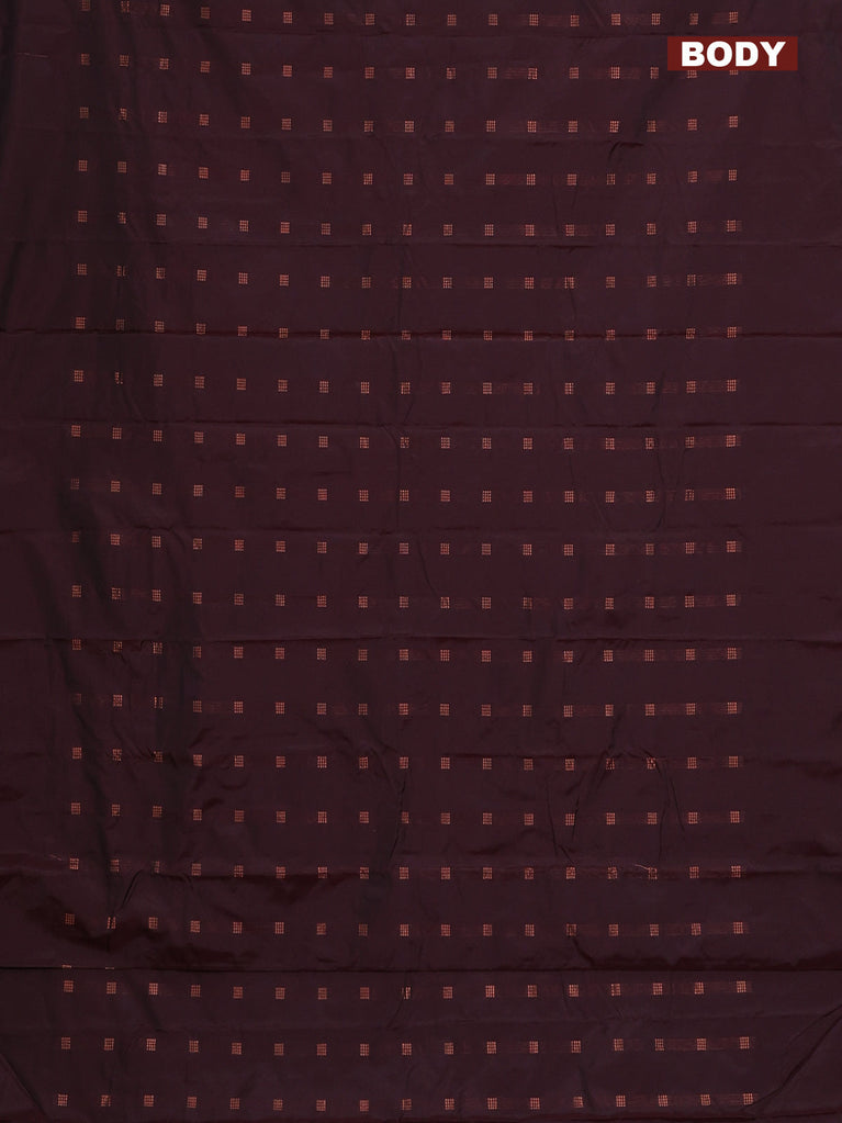 Arani semi silk saree deep maroon with copper zari woven buttas in borderless style