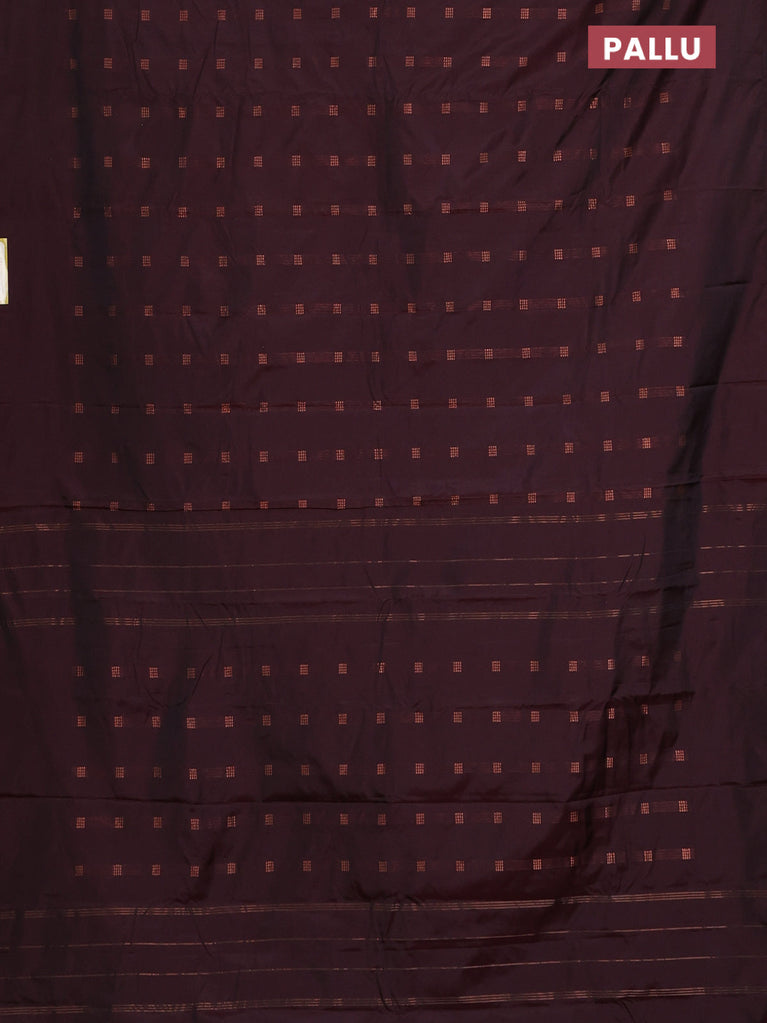 Arani semi silk saree deep purple with copper zari woven buttas in borderless style