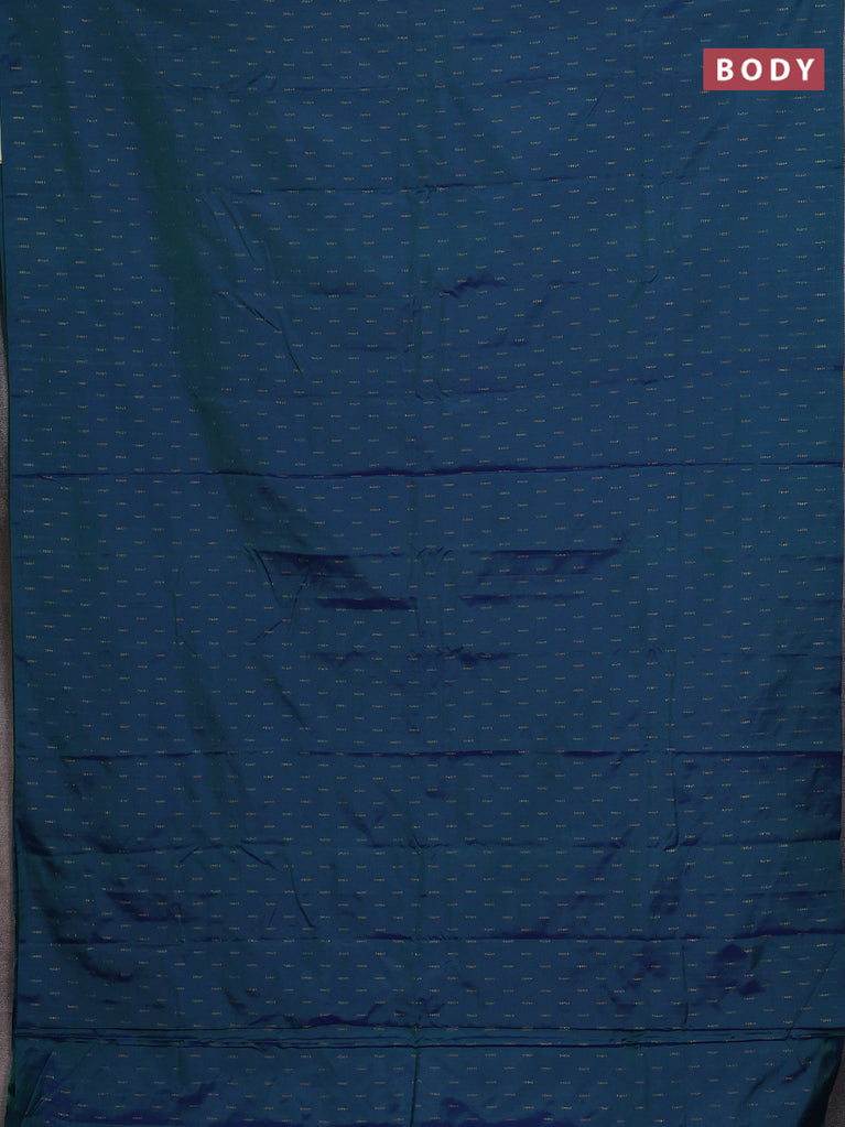 Arani semi silk saree dual shade of bluish green with zari woven buttas in borderless style