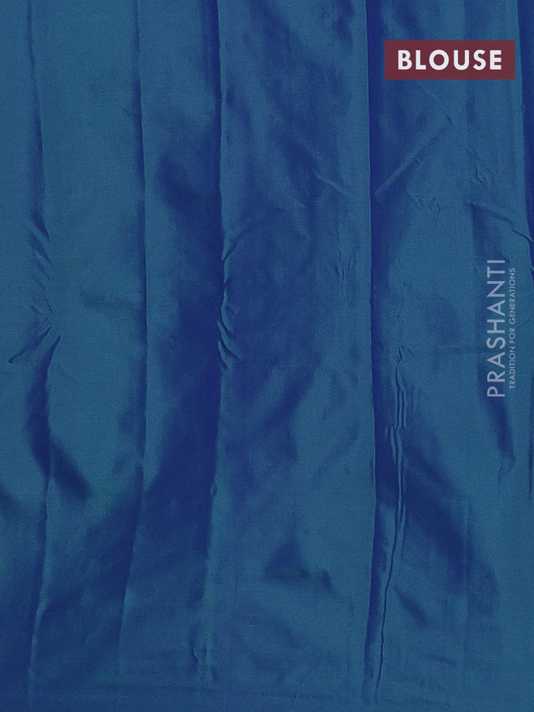 Arani semi silk saree dual shade of blue with allover copper zari weaves in borderless style