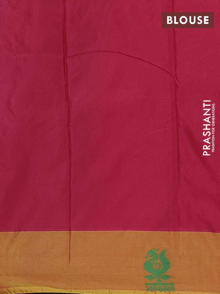Arani semi silk saree dual shade of dark mustard and green with thread woven buttas and thread woven butta border