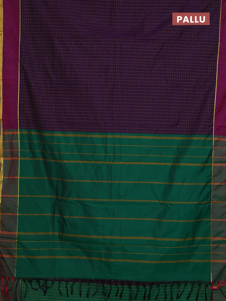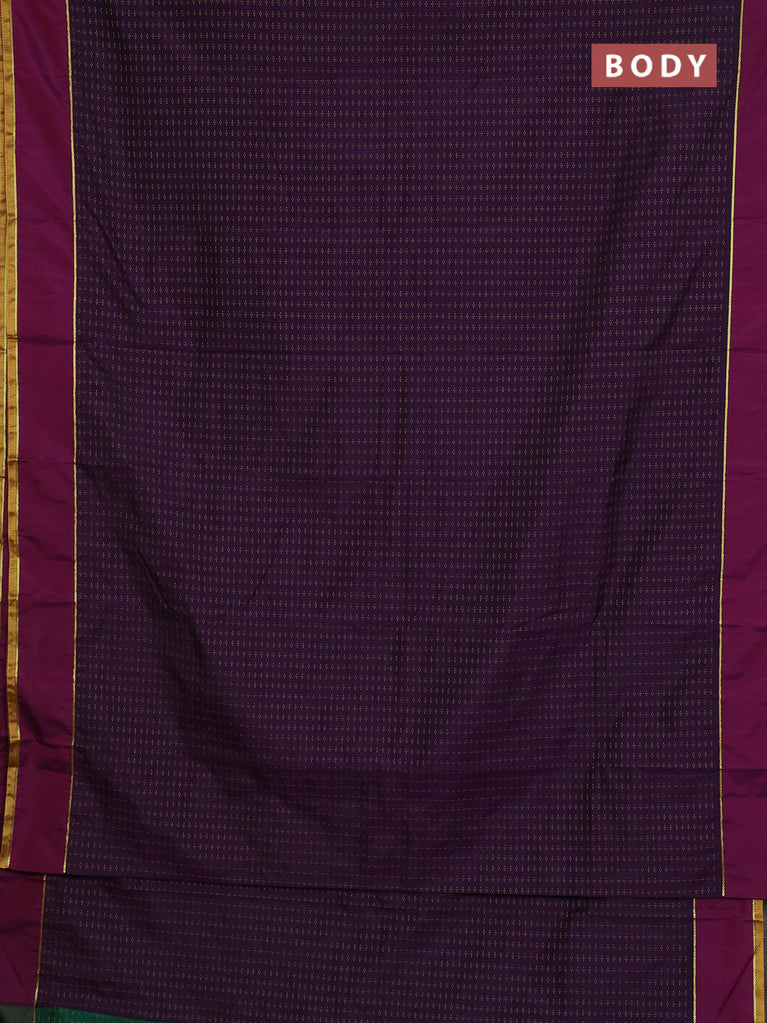 Arani semi silk saree deep purple and green with allover thread weaves and rettapet zari woven border`