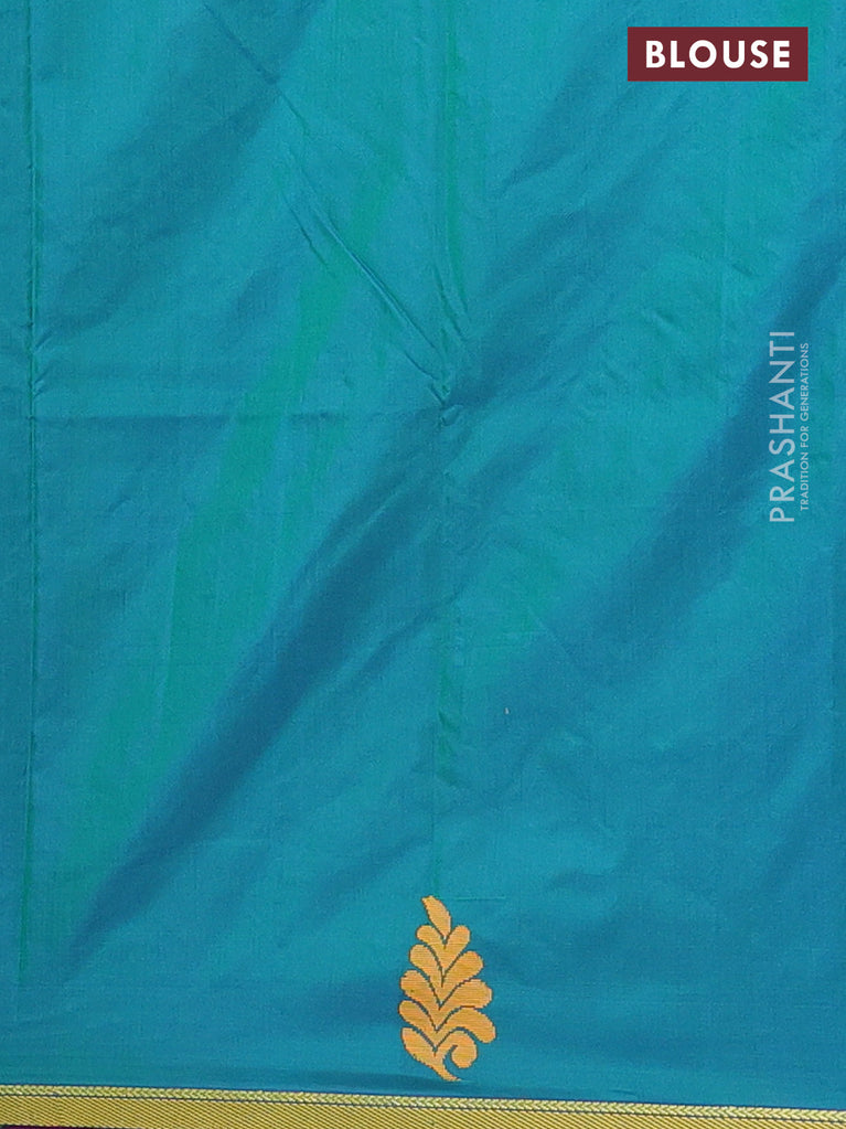 Arani semi silk saree dual shade of peacock blue with allover silver zari weaves in borderless style