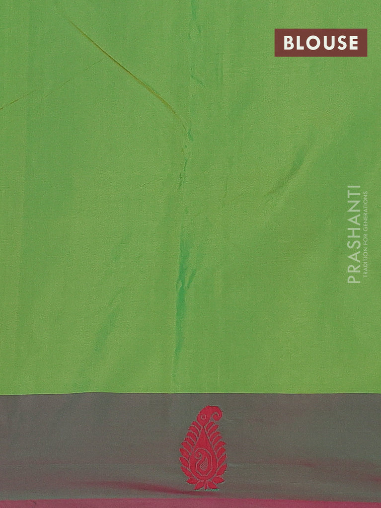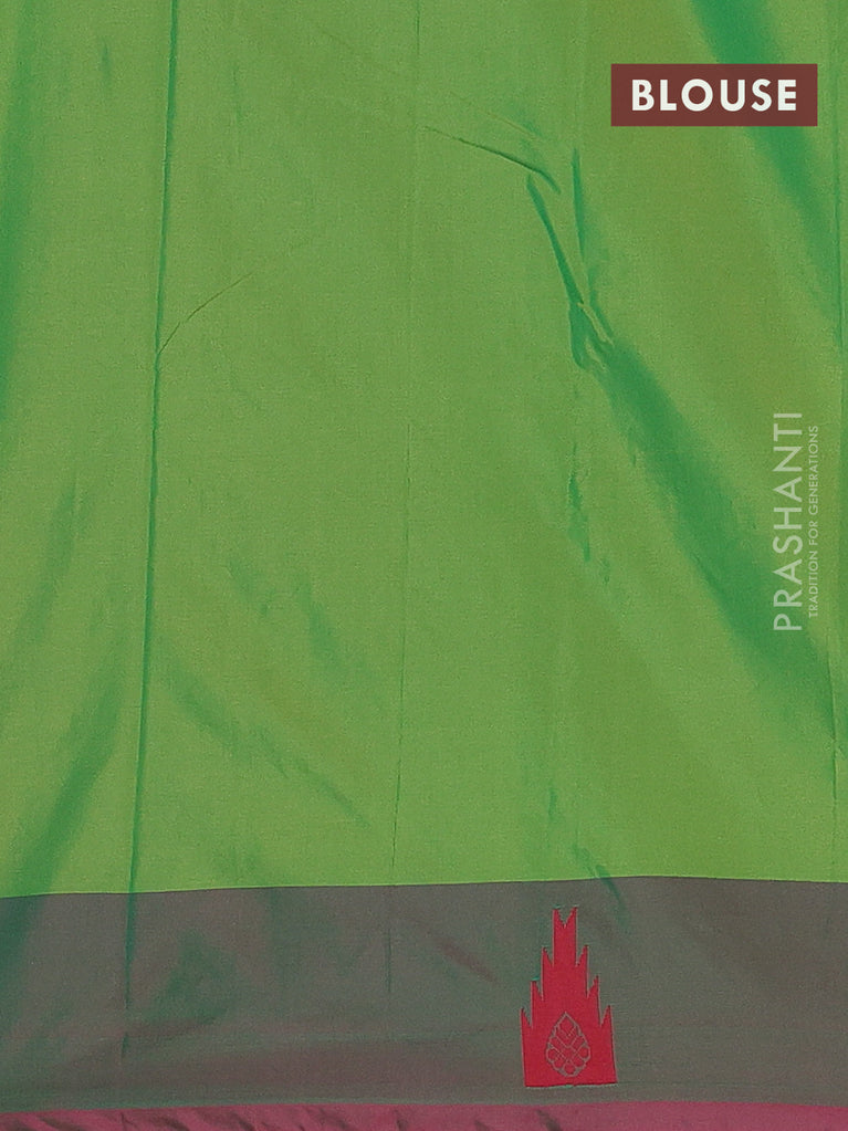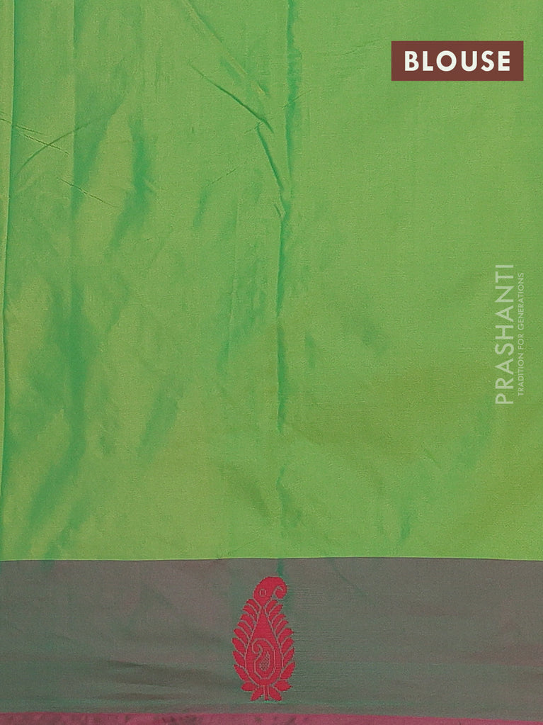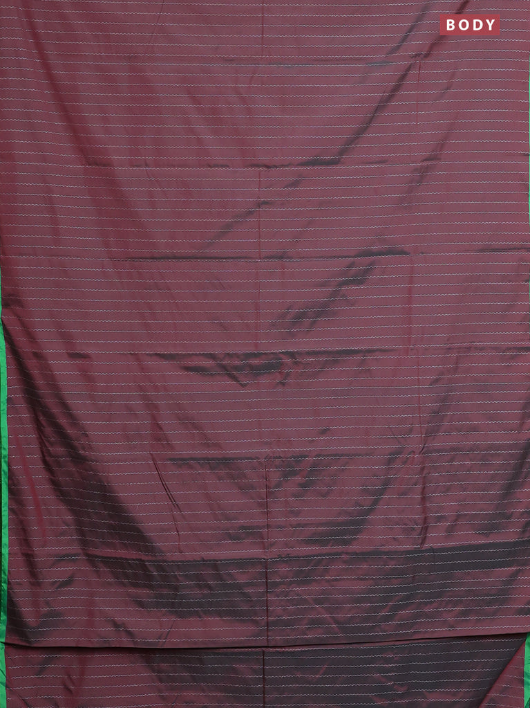 Arani semi silk saree dual shade of maroon and light green with allover silver zari weaves and piping border