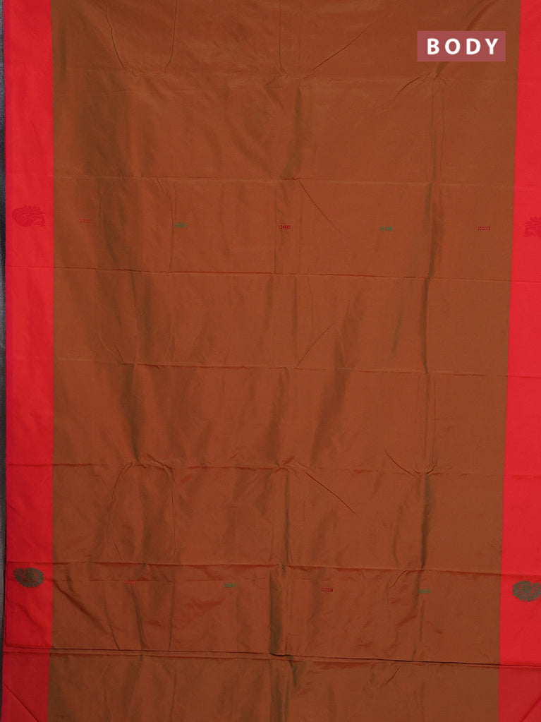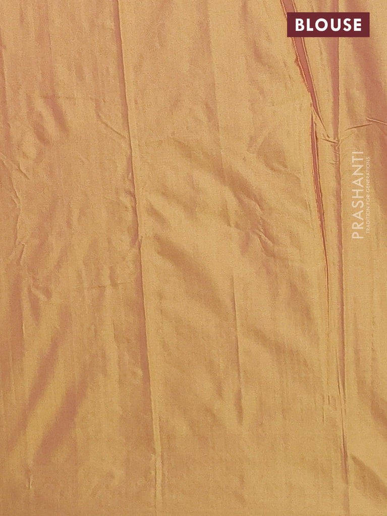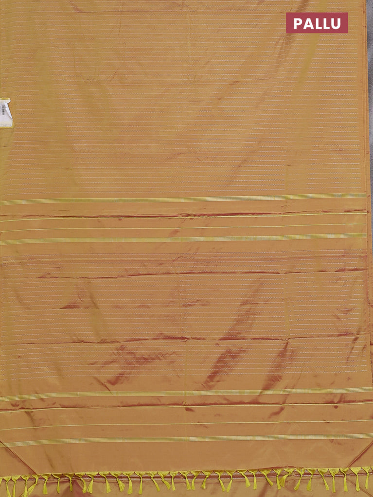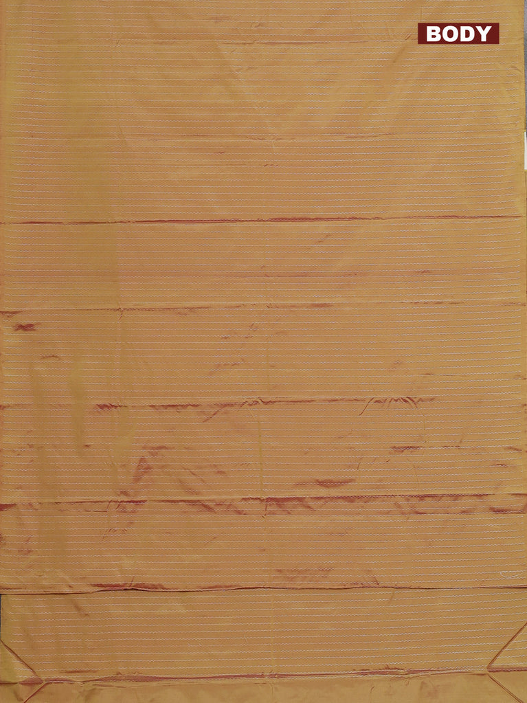 Arani semi silk saree dual shade of mustard with allover copper zari weaves in borderless style