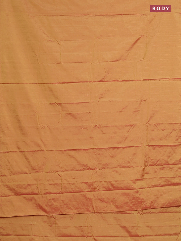 Arani semi silk saree dual shade of pink and dark mustard with allover copper zari weaves and zari checked border