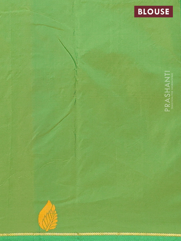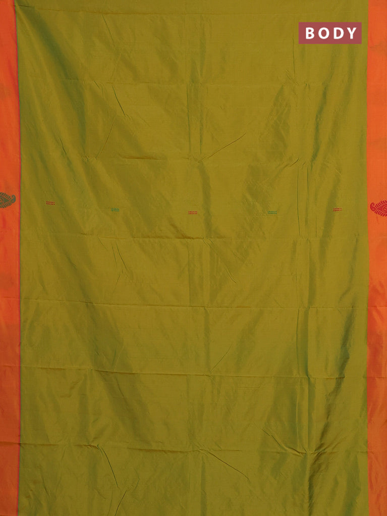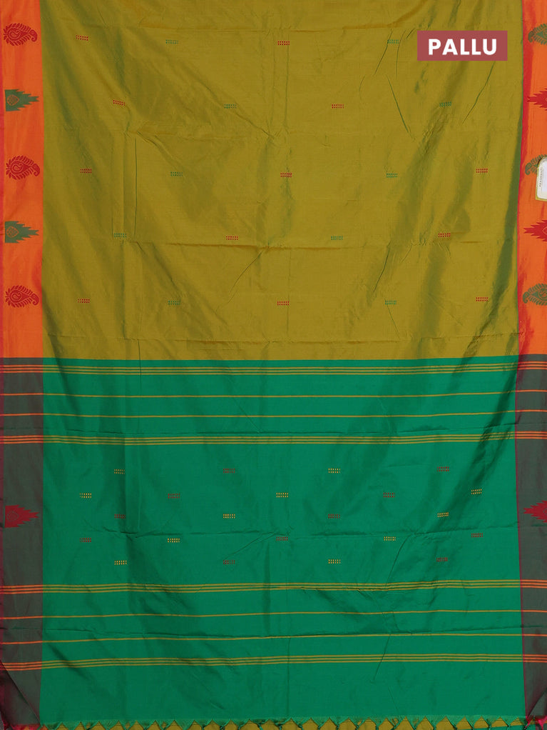 Arani semi silk saree dual shade of mustard green and green with thread woven buttas and thread woven butta border