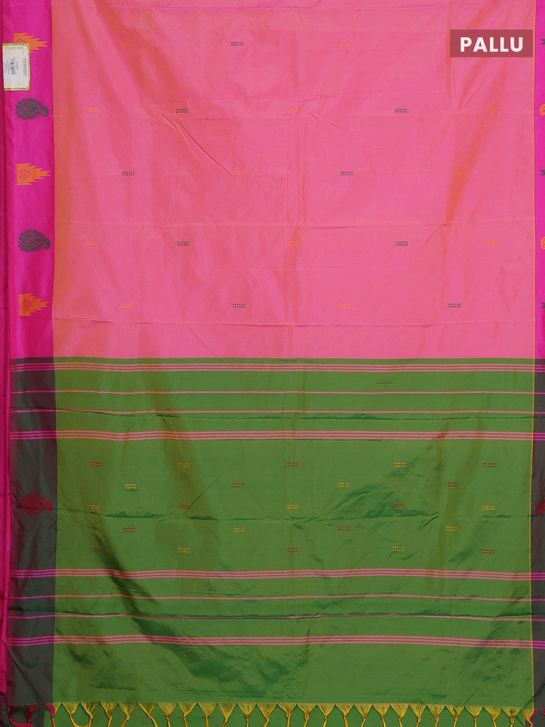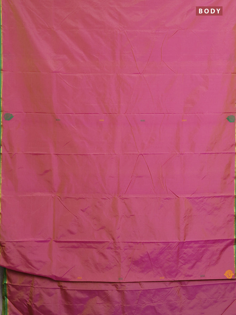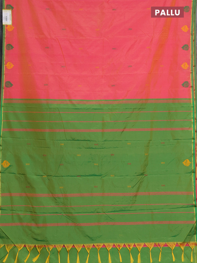 Arani semi silk saree dual shade of pink and green with thread woven buttas and thread woven butta border