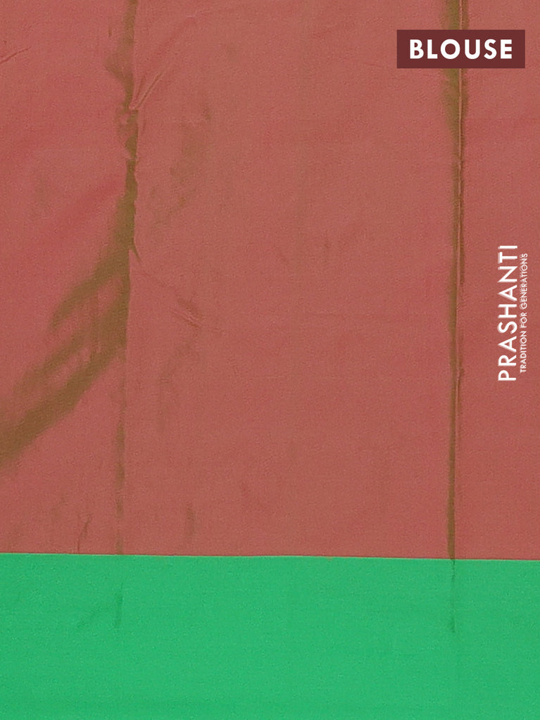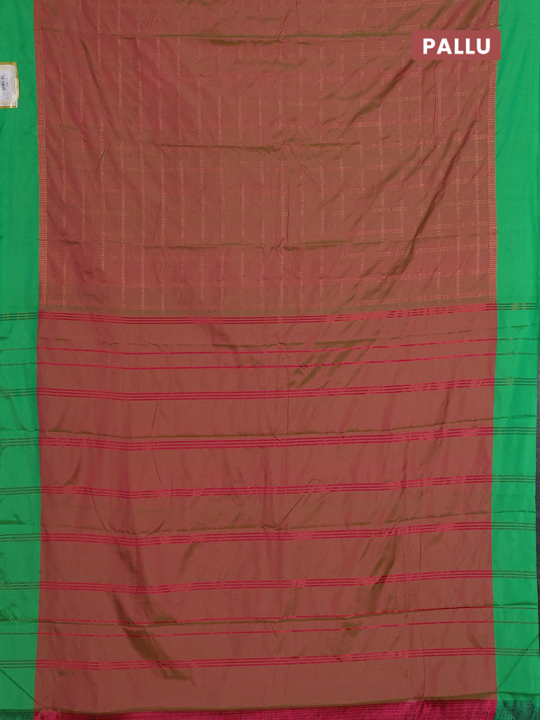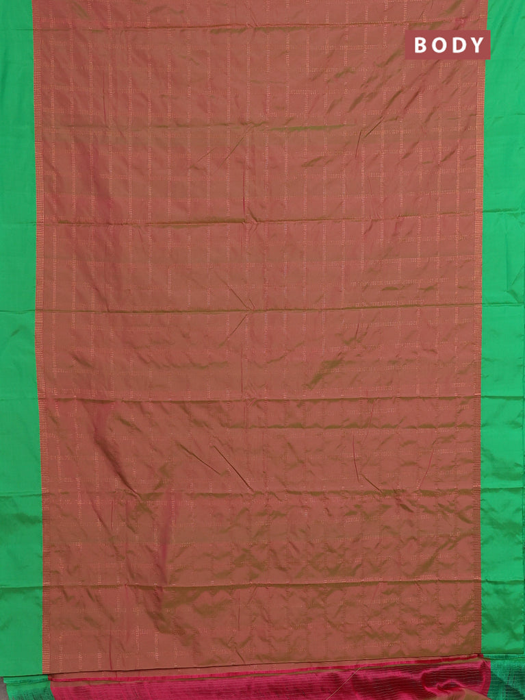Arani semi silk saree dual shade of pink and green with allover copper zari checked pattern and copper zari woven simple border