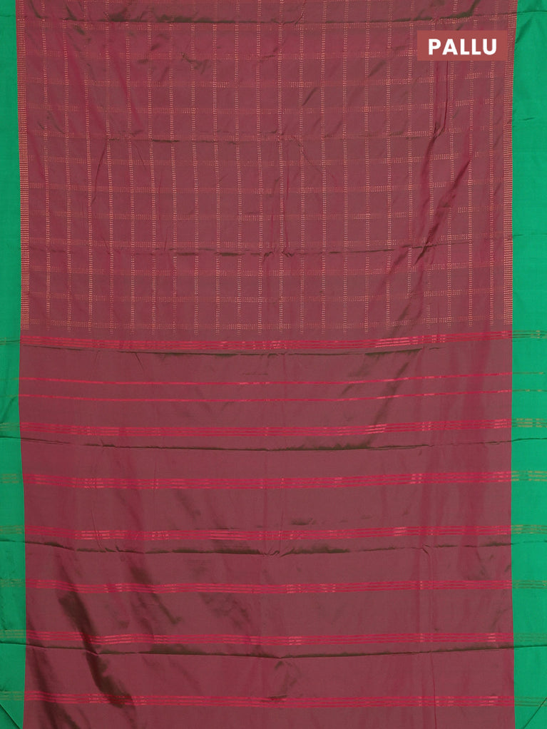Arani semi silk saree dual shade of maroon and green with allover copper zari checked pattern and copper zari woven simple border