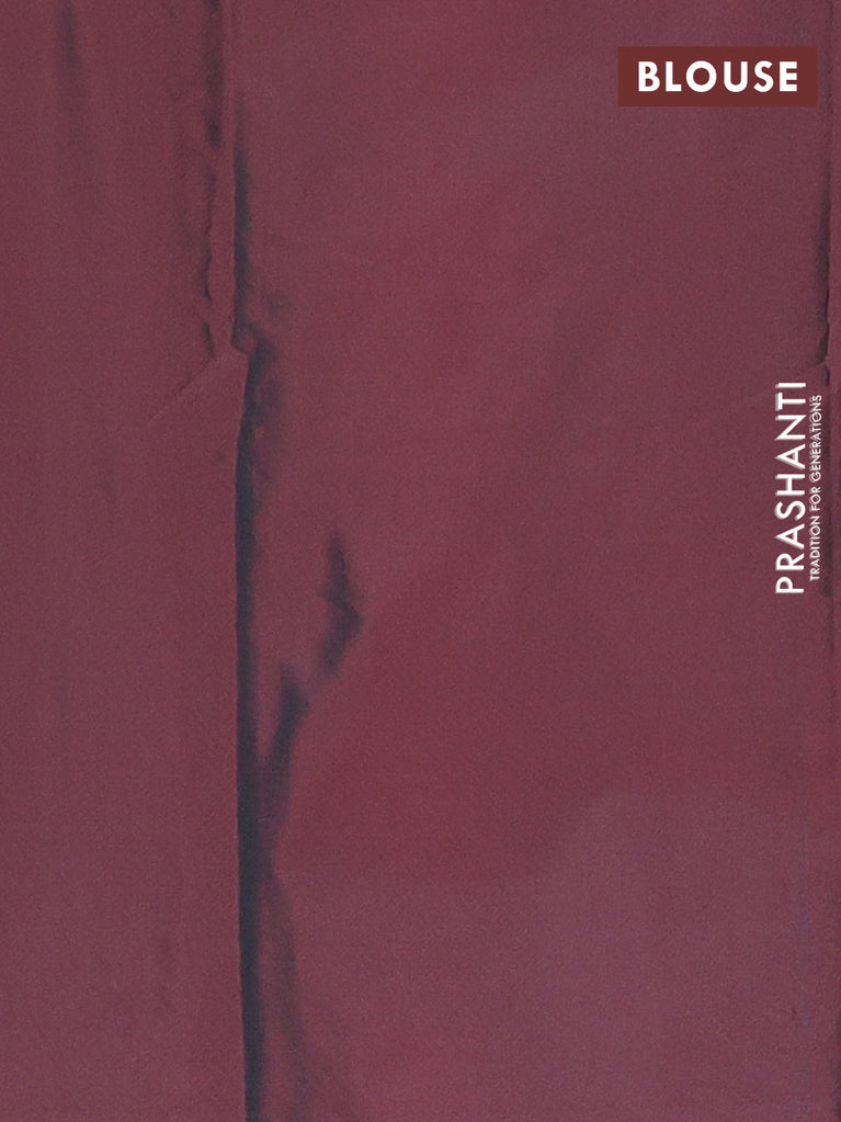 Arani semi silk saree dual shade of maroon with allover silver zari weaves in borderless style