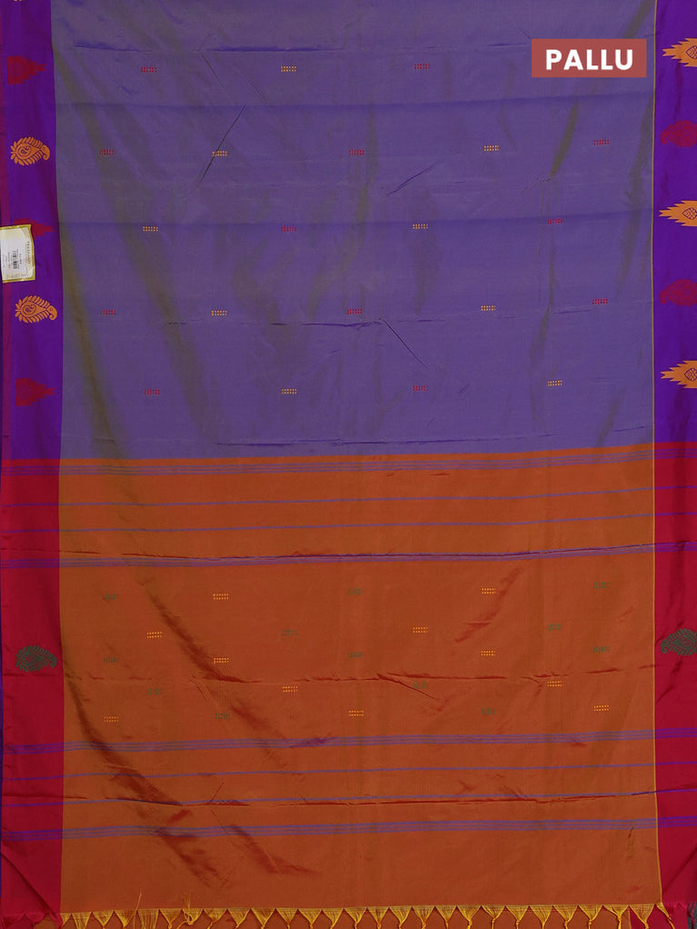 Arani semi silk saree dual shade of violet and dual shade of orange with thread woven buttas and thread woven butta border
