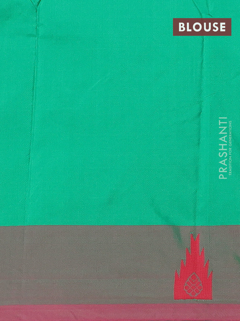 Arani semi silk saree green and dark magenat pink with thread woven buttas and thread woven butta border