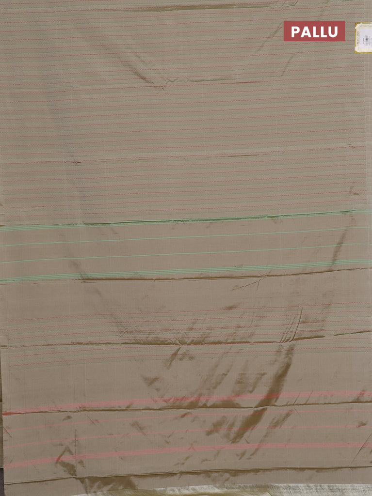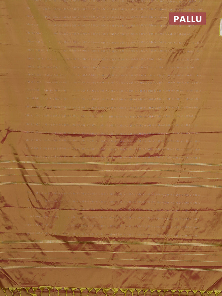 Arani semi silk saree dual shade of yellowish pink with allover silver zari weaves in borderless style