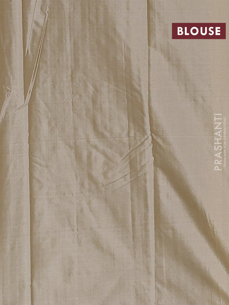 Arani semi silk saree greeen with copper zari woven buttas in borderless style