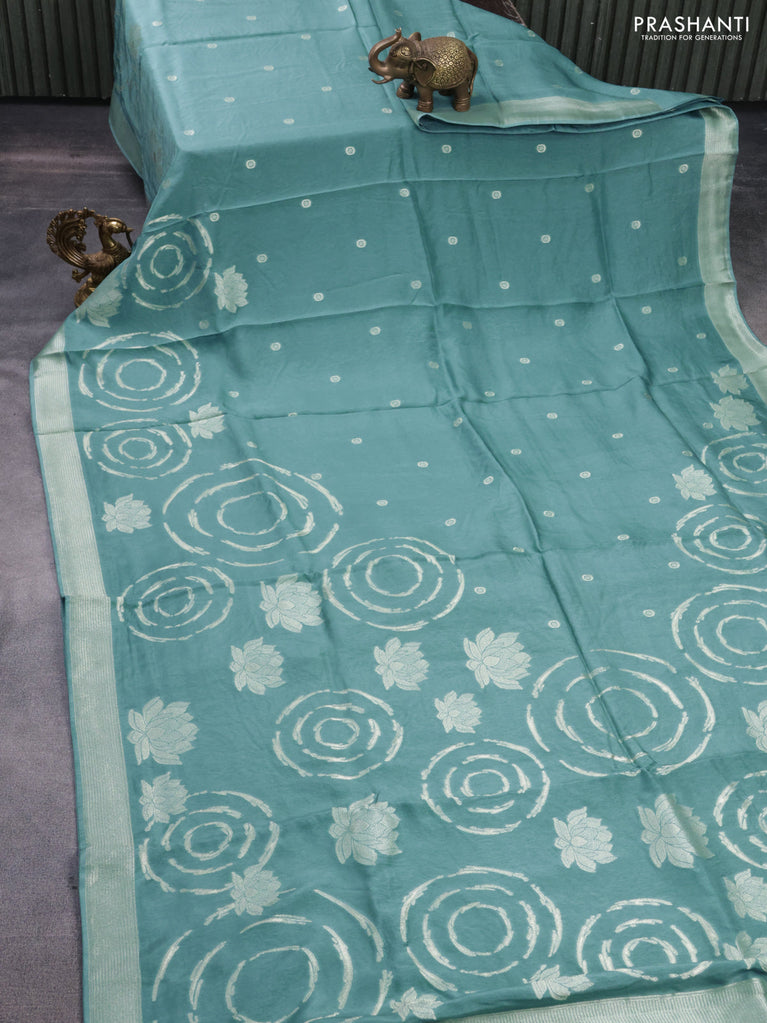 Banarasi silk saree teal blue shade with position prints and printed border