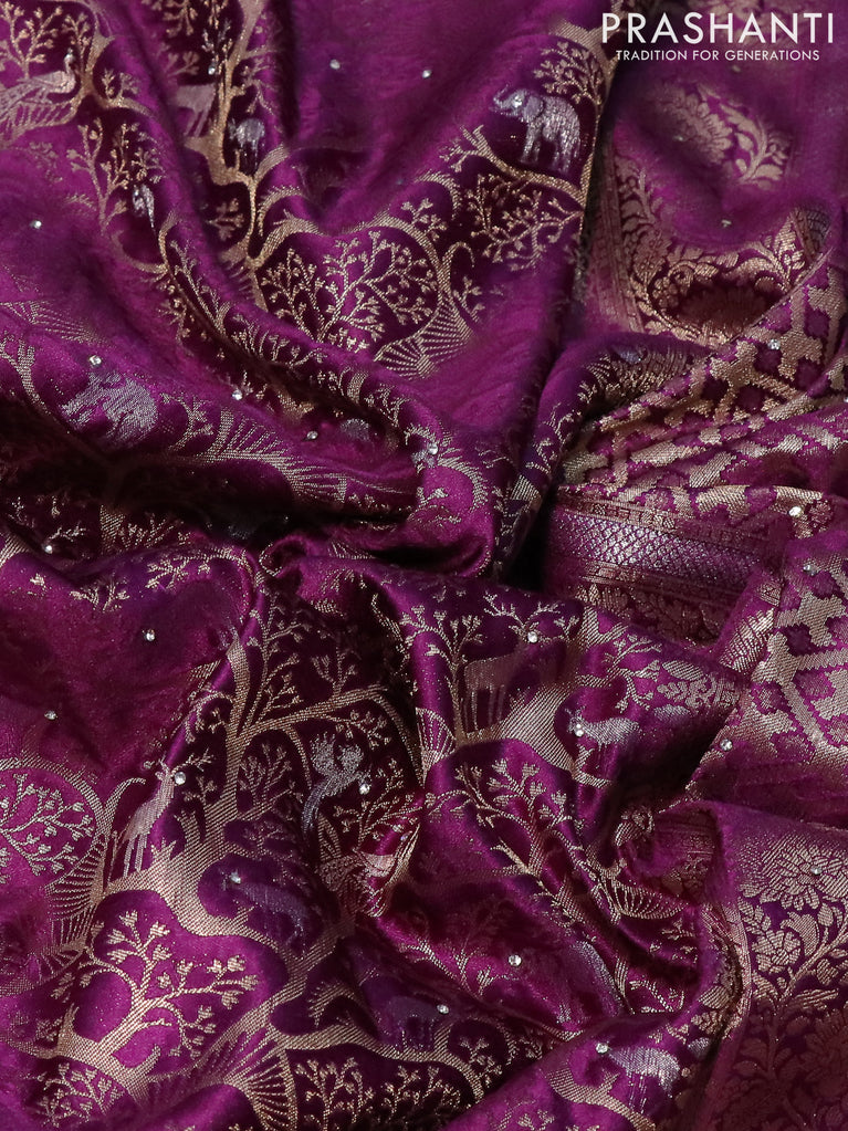 Banarasi silk saree purple with allover zari woven brocade weaves and zaridosi gotapatti work border
